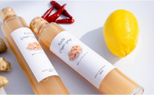 知県産のしょうがを使い、甜菜糖やイタリア産の有機レモン果汁など、身体にやさしい食材だけで作った「ジンジャーシロップ」をお届けします。