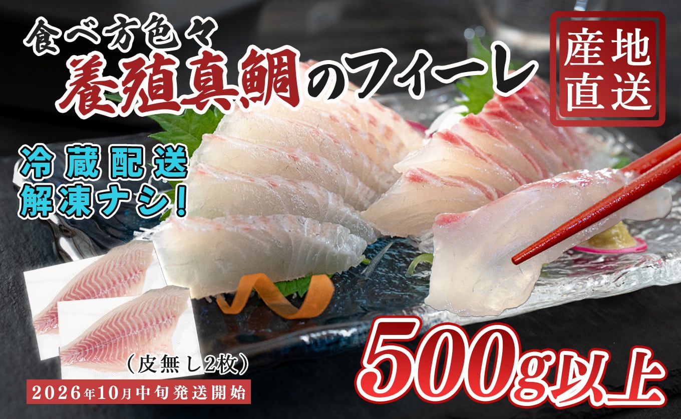 【先行受付】 真鯛 フィーレ 皮なし 半身2枚セット 500g以上 養殖真鯛 刺身用 鮮度抜群 真空パック 当日発送 鯛めし カルパッチョ 高知県大月町産