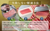 解凍方法はとってもシンプル。氷水に浸けて10分置き、その後袋から出して冷蔵庫で10分置くだけ。たったこれだけで、まるで生のままのような黒潮本まぐろをお楽しみいただけます。
