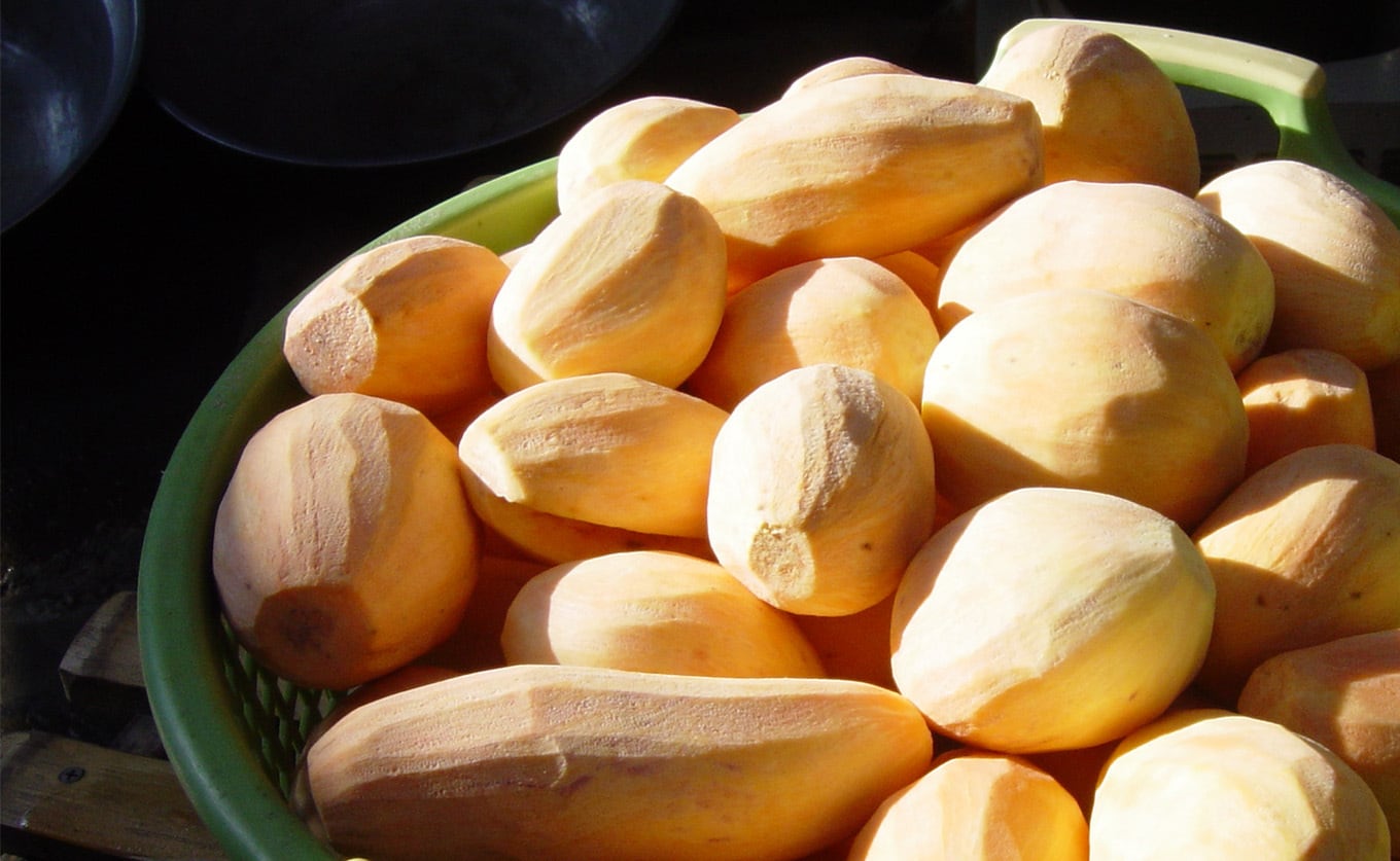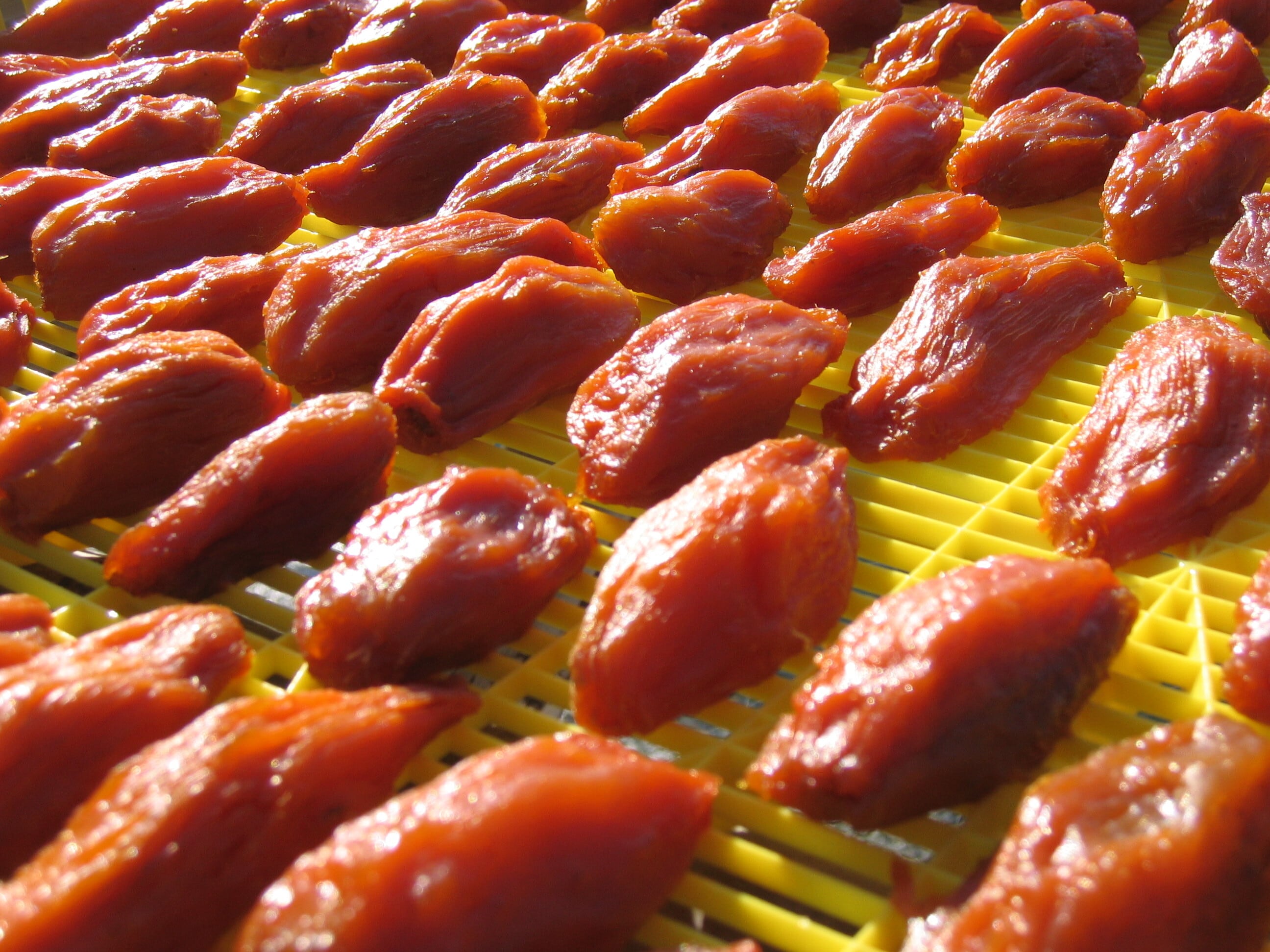 まず、厳選された「紅ハヤト」の皮を丁寧に剥ぎ、約4~5時間もの間、大きな窯でじっくりと煮込みます。煮込んだ後は、数週間の時間をかけて天日干しを行い、その間に芋の甘みがじっくりと凝縮されていきます。